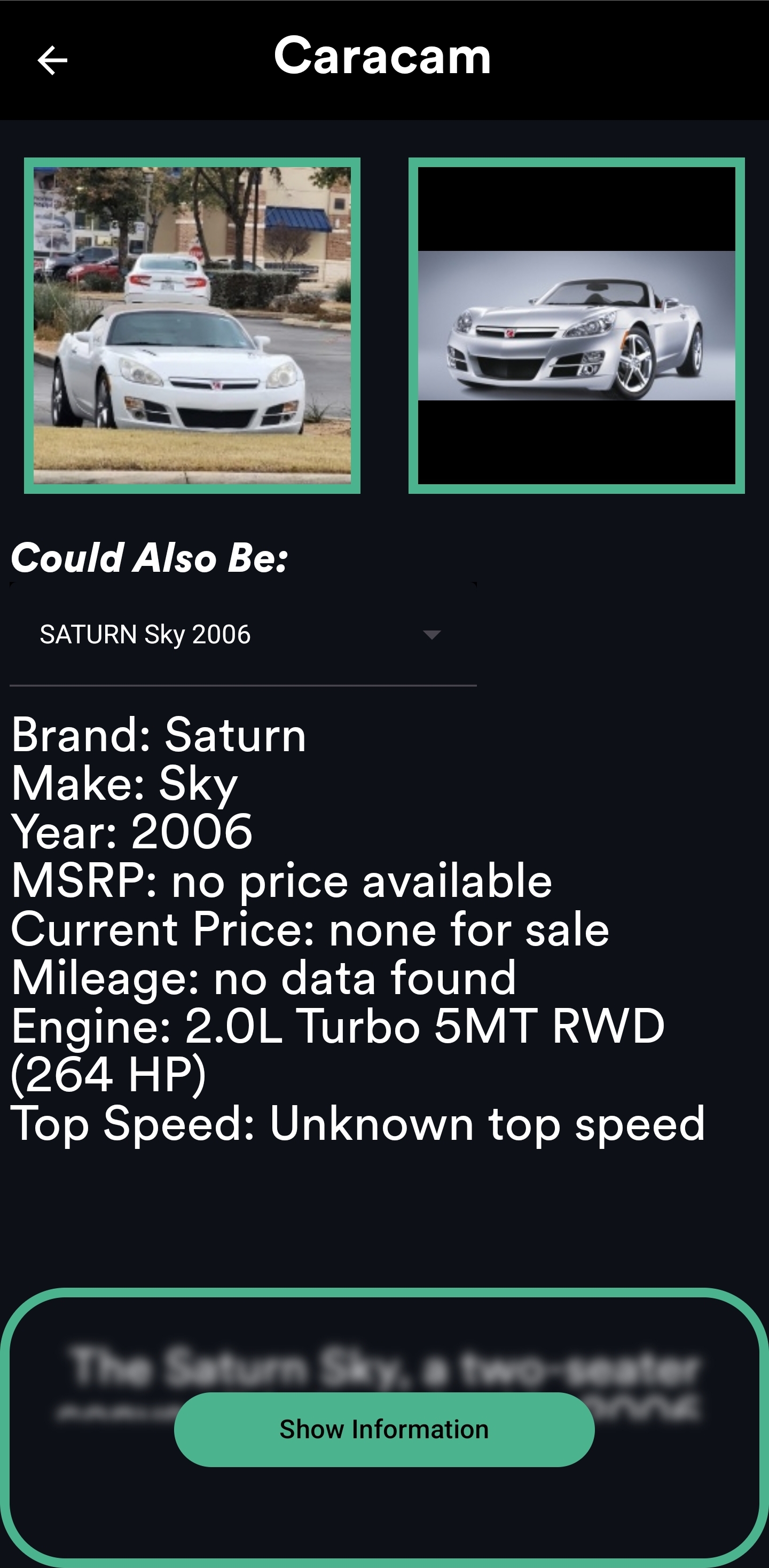 This all started when a few of my friends and I were in a parking lot and I spotted a Saturn Sky. I had no clue what this car was and it had no identifying badges, in fact I only learned it was a Saturn Sky because I used my AI to identify it a whole 1 1/2 years later! During this time I had very little in life that I had to do, COVID just ended and during that lockdown I found my passion in creating AI projects and making them do different things. I already liked Python but this made me fall in love with programming and coding. My friend knew about this little obsession I had and he gave me a task, really felt like I was being sent on a quest. He told me, “How about you just make an AI to tell you what car that is?”, and so I did, and I became obsessed with this side-project, it completely took my life over and I’m finally finishing it up 2 years later. I hope you all enjoy the fruits of my labor as this has been a tough 2 years mostly going unemployed during this whole process despite applying to over 100 jobs over this period. Please, if you enjoy this project, consider supporting me on Patreon and Ko-Fi